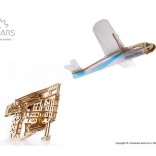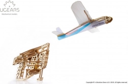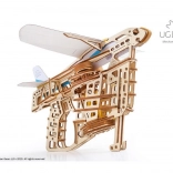 Lépjen be a működő mechanika világába a Ugears fából készült 3D modelljével. Nemcsak egy elegáns repülőt építhet meg, hanem egy kilövő mechanizmust is katapultpisztoly formájában, amely biztonságosan indítja a modellt és a papírrepülőket. Az okos áttételeknek, fogaskerekeknek és a gumimotornak köszönhetően a mechanikát működés közben láthatja – egyetlen csepp ragasztó nélkül.