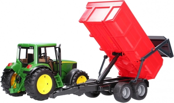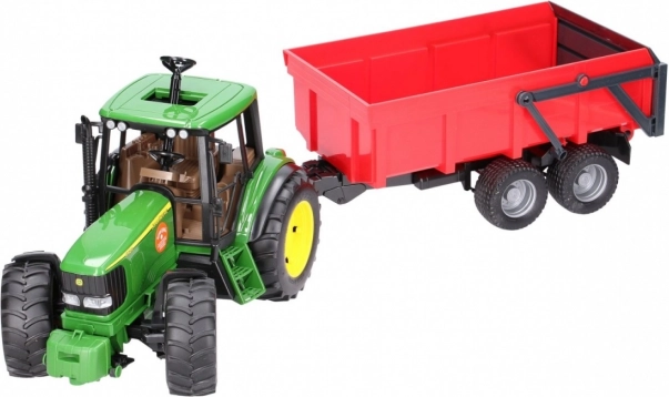 Valósághű szett kis farmereknek: a zöld JOHN DEERE traktor billenő platós pótkocsival rengeteg funkciót kínál az akciódús játékhoz. Nem hiányzik a nyitható motorháztető, a tetőn keresztüli kormányzás hosszabbított kormánnyal és a profilozott gumiabroncsok sem. A pótkocsi automatikus hátsó fallal rendelkezik a könnyű kirakodáshoz. Minőségi német kivitel tartós műanyagból, 1:16 méretarány.