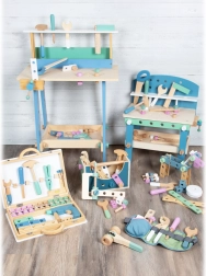 Stílusos, skandináv dizájnú fa munkapad, amely fejleszti a gyerekek fantáziáját és készségeit. Tartalmaz 21 kiegészítőt, praktikus polcot a szerszámok tárolásához és kompakt méreteket, ideális a gyerekszobába. A gyerekek valósághű játékot élhetnek át a fa szerszámokkal, miközben fejlődik a finommotorikájuk.