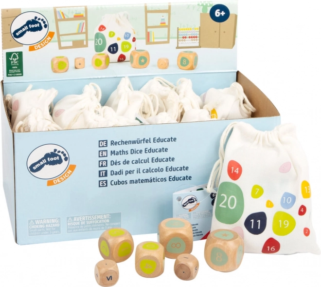 Bemutatjuk az oktató matematikai kockákat, amelyek ideálisak az aritmetika játékos gyakorlásához. Minden készlet hat kockát tartalmaz, 100% minősített FSC® fából, támogatva a körültekintő és felelős erdőgazdálkodást. Remek eszköz a gyermekek matematikai készségeinek fejlesztéséhez.