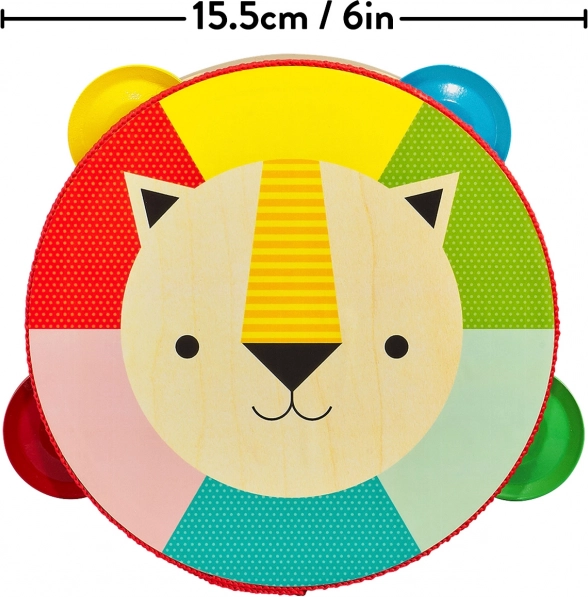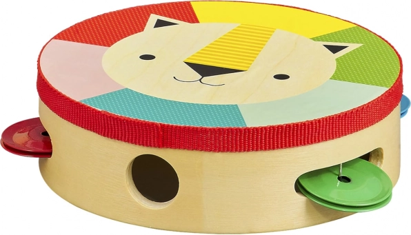 Ez a minőségi, nyárfa rétegelt lemezből készült fa tamburin örömet szerez a kezdő kis zenészeknek és szüleiknek is. A könnyű, kényelmes fogás, a biztonságos növényi alapú festékek és a vízbázisú lakk gondtalan játékot biztosítanak. A vidám oroszlánmotívum és az élénk színek fejlesztik a ritmusérzéket, a színfelismerést és a finommotorikát.