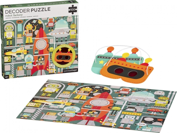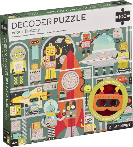 Lépj be a robotok és gyáruk világába! Rakd ki a 100 darabos puzzle-t, majd a speciális dekódoló maszk segítségével fedezd fel azokat a rejtett részleteket, amelyek a űrhajó összeállításához szükségesek. Ez az okos kiegészítő a kirakást interaktív játékká változtatja, amely logikát, megfigyelést és finommotorikát fejleszt.