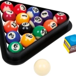 - A készlet tartalma: 2 dákó, biliárdgolyók, háromszög és kréta.