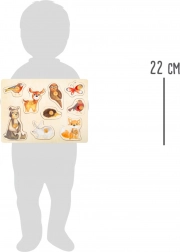 A small foot Erdei állatok fa beillesztős kirakó ideális első puzzle a legkisebbeknek. A masszív alapnak, a lekerekített éleknek és a darabokon található praktikus gomboknak köszönhetően az alakzatok könnyen megfoghatók és a helyükre illeszthetők. Játék közben a gyerekek természetes módon fejlesztik a finommotorikát, a kognitív képességeket és a türelmet.