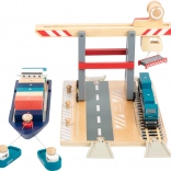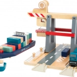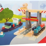 A mágneses daru könnyedén emeli és mozgatja a konténereket – a gyerekek fejlesztik a koordinációt, és valósághű kikötői működést élnek át.