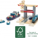 A készlet teljes mértékben kompatibilis a szokványos fa vonatpályákkal, így könnyedén bővíthető további sínekkel, vonatokkal és járművekkel. 100% FSC fából készült – felelős választás, amely óvja az erdőket, hosszú élettartamot és biztonságos játékot biztosít.