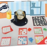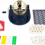 Ez a komplett Bingo készlet mindent tartalmaz az azonnali játékhoz: hajtókarral ellátott fém sorsolódob, számozott golyók, kártyák és színes zsetonok. A játékosok sorban jelölik a kihúzott számokat a saját kártyáikon, és aki elsőként állít össze vízszintes, függőleges vagy átlós ötös sort, az kiáltja: „BINGÓ!”.