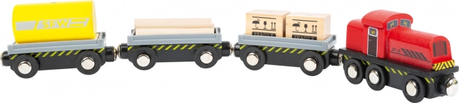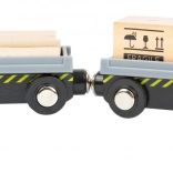 A csomag 25 sín elemet, mozdonyt vagonokkal és rakományt tartalmaz. A készlet a legtöbb fa vonatpályával könnyedén összekapcsolható a még nagyobb játékvilágért.