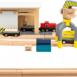 Ez a gazdagon felszerelt fa készlet hiteles teherpályaudvari élményt nyújt a gyerekeknek. A forgódaru könnyedén mozgatja a mágneses blokkokat és konténereket, a csigás tolófal rugalmas kezelést tesz lehetővé, a mágneses szerelvény pedig 25 elemből álló változatos pályán szállítja az árut. Mindez minősített FSC fából, a tartósság és a biztonságos játék érdekében.