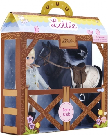 Lottie imád lovagolni – nyereg alatti készségeit és a lóápolást is gyakorolja. A szett mindent tartalmaz, amire a kis lovasoknak szükségük lehet a valósághű játékhoz: a lovasöltözettől a nyeregig és a kantárig. A babát Írországban tervezték, részletgazdag kidolgozásáért díjazták, ezért játékra és gyűjtésre egyaránt ideális.