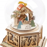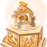Ez a gyönyörű fénydekoráció minőségi fából készült. A karácsonyi betlehemes motívumú zenélő doboz a „Csendes éj” dallamát játssza. Miközben a zene szól, a megvilágított ünnepi gömb tompa fényt áraszt. Az elemek nem részei a csomagnak. Főbb jellemzők: ünnepi gömb és zenélő doboz egyben, kellemes karácsonyi hangulatot teremt; apró, finoman faragott részletek; megfelel az európai biztonsági szabványoknak