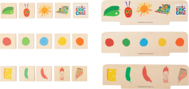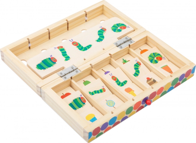 A kedvelt Very Hungry Caterpillar motívum azonnal felkelti a gyerekek figyelmét. A lapkák és a fedél könnyen kezelhetők, a tartós fa kivitel pedig hosszú élettartamot biztosít. Játék után mindent egyszerűen rögzíthet az elasztikus pánttal – semmi sem szóródik szét.