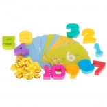 A csomag részei a feladatkártyák is, amelyek fokozatos kihívásokat kínálnak az egyszerű összeadástól az alapvető kivonásig. A masszív műanyag konstrukciónak köszönhetően a játék ideális otthoni tanuláshoz és óvodai használatra.
