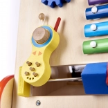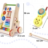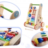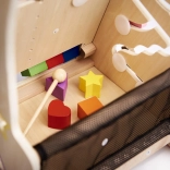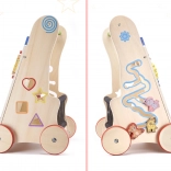 A fa járóka oktatási elemekkel ideális segítő a gyermek motorikus képességeinek fejlesztéséhez. Stabil támogatást nyújt az első lépéseknél, és inspirálja a tanulást és az érzékek fejlesztését.