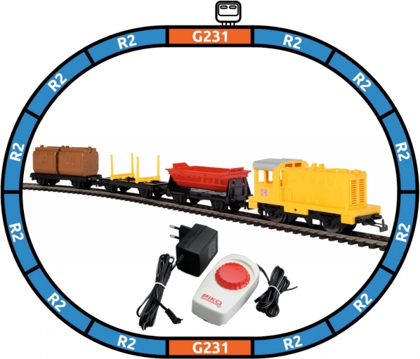 - DB dízelmozdony (1×), DB tehervagonok (3×), R2 ívek 55212 (12×), G231 egyenesek 55201 (2×), 55270 betápláló sínkapocs (1×), 55003 analóg vezérlő tápegységgel (1×)