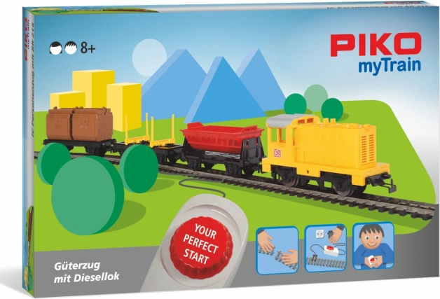 A PIKO myTrain kezdőkészlet mindent tartalmaz a gyors induláshoz: DB dízelmozdonyt, három tehervagont, alap R2 ovált és analóg vezérlőt tápegységgel. A H0 (1:87) méretaránynak köszönhetően a készlet teljes mértékben kompatibilis más gyártók H0 komponenseivel és sínrendszereivel.
