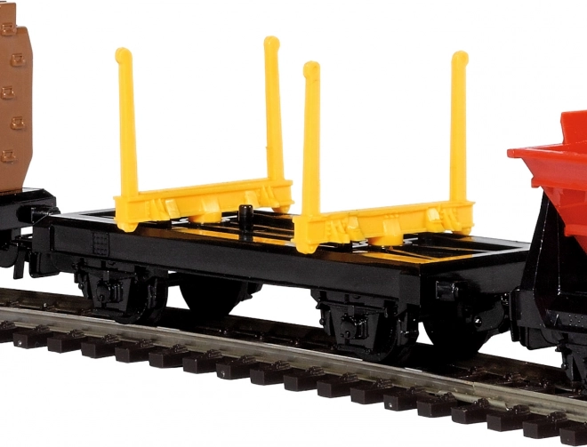 A kocsik precízen ágyazott műanyag kerékpárokkal és szabványos felszereltséggel rendelkeznek a megbízható üzemhez. A szerelvényt strapabíróságra és szórakoztató játékra tervezték, miközben megfelelő részletességet is megőriz. A minimum 120 × 98 cm-es építési felület kisebb helyiségekben is könnyű elhelyezést tesz lehetővé.