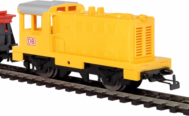 A sárga dízelmozdony egyszerű analóg vezérléssel robusztus és megbízható, mindennapos játékra is alkalmas.