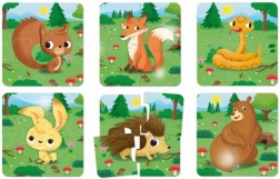 Rengeteg szórakoztató kirakó az erdei barátokkal. Fejleszd a megfigyelőképességet, és rakd össze helyesen a képeket a darabokból. A készlet 24 darabot tartalmaz, amelyekből 6 képet állíthatsz össze. Biztonságos anyagokból készült, 1 éves kortól ajánlott.