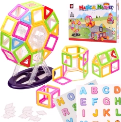 A nagy mágneses építőkészlet minden segítséget megad, hogy gyermeke saját vidámparkot vagy játszóteret alkosson meg. A különleges alap lehetővé teszi akár egy óriáskerék építését is. Ez a készlet kiváló ajándék lehet minden kis művész és építész számára.