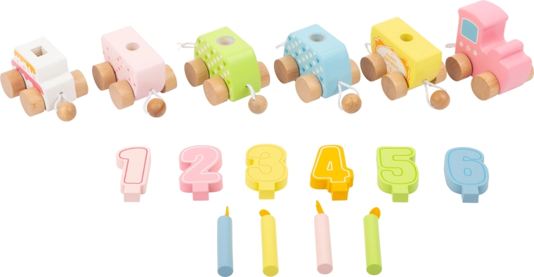 Az 1-től 6-ig terjedő számok és a gyertyák segítségével a vonat fejleszti a gyerekek számolási képességét és színfelismerését.