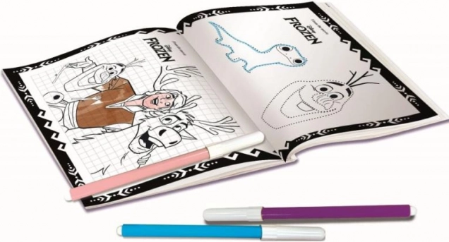 Színes filctollak és a Frozen filmből készült témás rajzok segítenek a gyerekeknek fejleszteni kreativitásukat.