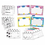 A készlet tartalmaz rajzlapokat és filceket, amelyek motiválják a gyerekeket a mindennapi gyakorlásra és alkotásra.