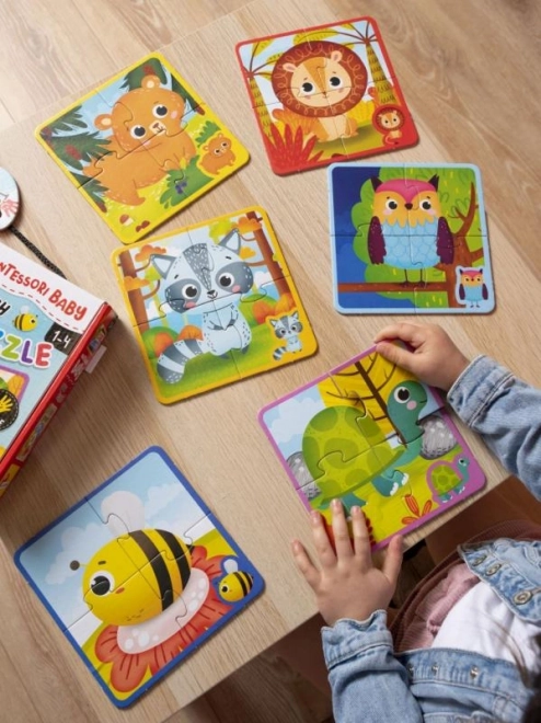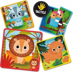 A Montessori Tapintható Puzzle Játék készlet 24 darabot tartalmaz, amelyekből 6 különböző állatképet lehet összeállítani. Minden állat speciális érdes felülettel rendelkezik, amely segít a gyerekeknek a tapintási érzékelés és megfigyelési készségek fejlesztésében. Ezek a puzzle játékok úgy vannak kialakítva, hogy bevonják a gyermek minden érzékszervét és elősegítsék a természetes fejlődésüket.