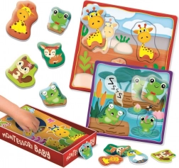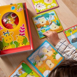 Fedezd fel a játékos, didaktikus készletet, amelyben a gyerekek a kicsinyeket az anyukájukhoz és apukájukhoz párosítják, megismerik az állatokat és természetes környezetüket, miközben türelmüket, figyelmüket és finommotorikájukat gyakorolják. A készletet a legkisebbeknek tervezték – az egyszerű kontúros elemeket könnyű megfogni és behelyezni.