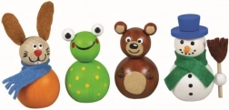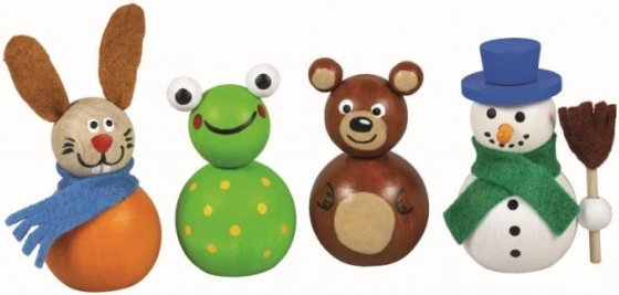 Ezzel a kreatív készlettel a gyerekek könnyedén összeállíthatnak és kidíszíthetnek akár három egyedi fa figurát. Az egyes fa elemeket hagyományos fehér, fa- és papírragasztóval lehet rögzíteni, a színezés vízzel hígítható festékkel vagy tartós filctollal történik. Az egyszerű folyamatnak és a mellékelt útmutatónak köszönhetően az alkotás szórakoztató és áttekinthető.