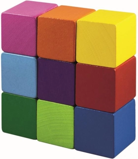 A Detoa színes fa kockák 9 db ideális első építőkészlet a kis építők számára. Kilenc minőségi, simára csiszolt, élénk színű kocka támogatja a kreatív játékot, a koordinációs készségeket és a térbeli képzelőerőt.