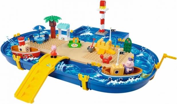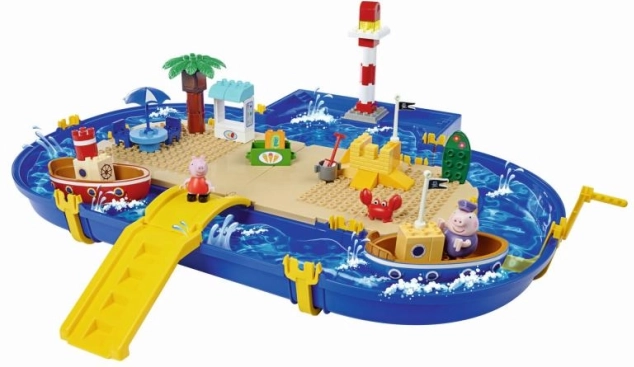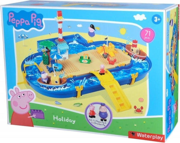 A gyönyörű Peppa Pig világ rengeteg lehetőséget kínál a kreatív játékhoz vízi témával. Ez a nagy vízi világ 47 különféle játékrészt foglal magában, beleértve hajókat és ismerős karaktereket a Peppa Pig animációs sorozatból. A következőket tartalmazza: