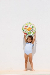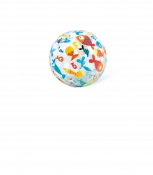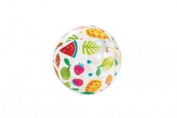 Könnyű és szórakoztató felfújható strandlabda a INTEX márkától, 51 cm átmérővel, vidám gyümölcs-, fagylalt- és halacska mintákkal (véletlenszerű választás). Tartós PVC-ből készült, gondtalan vízi és szabadtéri játékokhoz – ideális a strandra, medencébe és kertbe.
