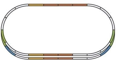 Az E készlet a kezdőkört egy párhuzamos egyenes szakasszal és két íves váltóval bővíti, ideális előzéshez és változatosabb üzemhez.