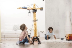 A nagy Mega Crane gyerekdaru valósághű építkezési élményt hoz közvetlenül a gyerekszobába. A 350°-os forgásnak és a vezetékes vezérlésnek köszönhetően a gyerekek könnyedén emelhetik és mozgathatják a rakományokat. A masszív talp és az átgondolt konstrukció stabil játékot biztosít.