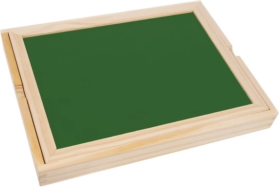 A tábla két variálható felületet kínál - egy fehéret tollal való íráshoz és egy feketét krétával való rajzoláshoz, lehetővé téve a kreatív játék különböző módjait.