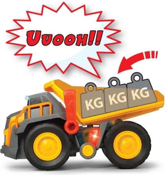 A Volvo teherautó valósághű fényekkel és hangokkal van felszerelve, amelyek különböző terhelésekre reagálnak, ezáltal igazi játékélményt nyújtanak.