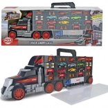 Nagy, fogantyúval ellátott teherautó-bőrönd az egyszerű hordozáshoz, amely gazdag játékszettet rejt – 7 fém kisautó, teherautó és helikopter. A kézi kilövő funkciónak a fülkéből köszönhetően a gyerekek egy pillanat alatt elindíthatják a versenyt. A masszív kivitel és a 62 cm-es hossz rengeteg szórakozást, valamint praktikus tárolást és rendszerezést biztosít a gyűjteménynek.