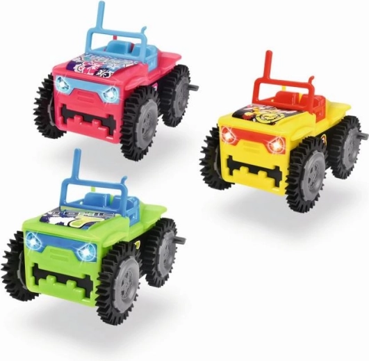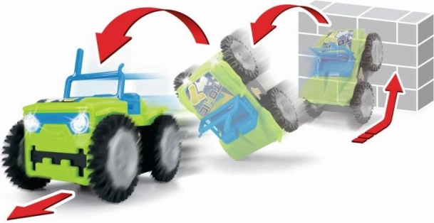 Elemekkel működő autó átforduló funkcióval. 3 színváltozat – rózsaszín, sárga, zöld. Hossza 9 cm.