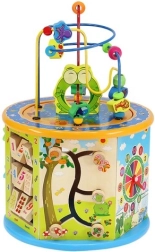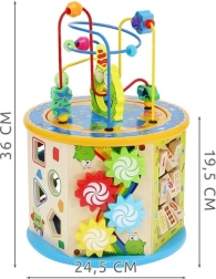 Fedezze fel a sokoldalú, 8 az 1-ben fa oktatókockát, amely hosszú órákon át tartó szórakozást nyújt, miközben fejleszti a finommotorikát, a logikus gondolkodást, valamint a színek, formák és számok felismerését. A tetején található színes golyópálya, a formaszorter, a fogaskerekek, az abakusz, az óra és a játéktábla teszik ezt a stabil játékot ideális választássá az okos játékhoz.