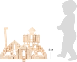 A legnagyobb kocka mérete 9x3x1,5 cm, a legkisebbé pedig 3x3x1 cm, ami sokféle variációs lehetőséget biztosít az építéshez.