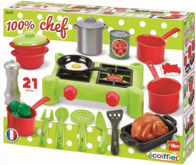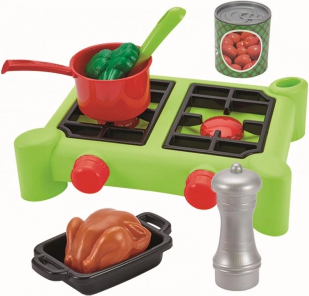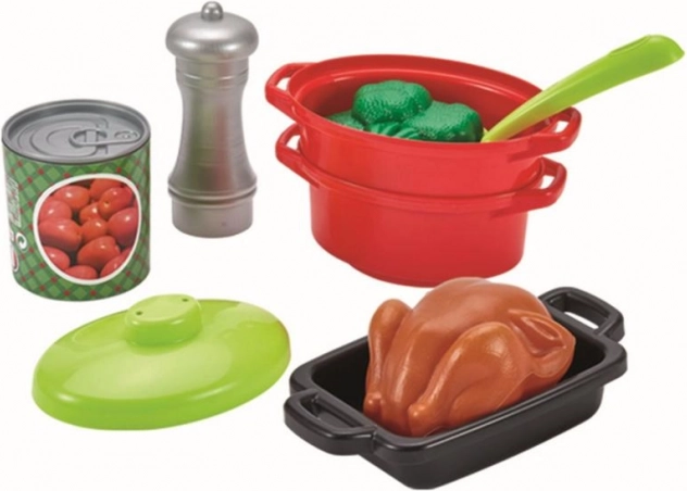 Ezzel a teljes edénykészlettel a gyerekek végtelen órákig élvezhetik a főzést. A készlet tartalmaz fazekat fedővel, lábost, serpenyőt, tepsit és különféle élelmiszereket, amelyek növelik a valósághűséget.