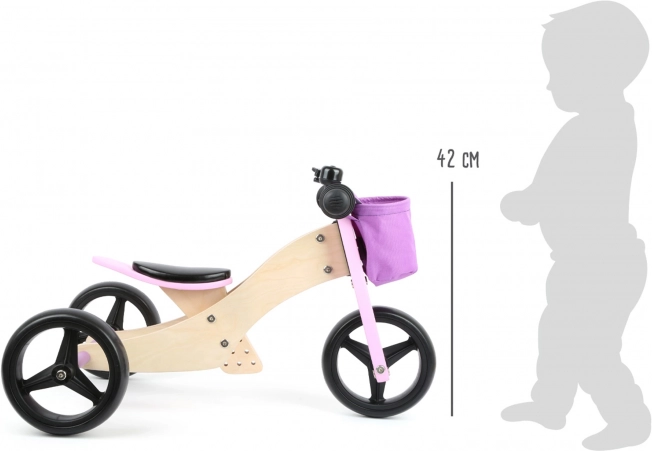 A rózsaszín small foot fa 2 az 1-ben futóbicikli elkíséri a kis motorosokat az első lépésektől a magabiztos gurulásig. Kezdjék háromkerekűként a maximális stabilitásért és az egyensúly fejlesztéséért, majd egyszerű átalakítással folytassák egyensúlyozó futóbicikliként. A könnyű és masszív konstrukció egyszerre biztosítja az egyszerű kezelhetőséget és a hosszú élettartamot.