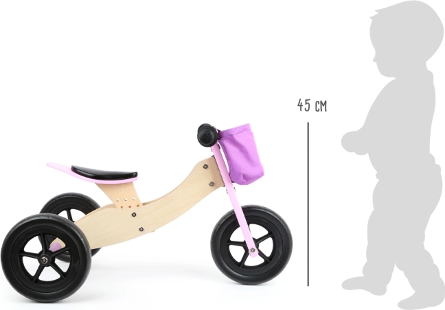 Ez a futóbicikli ötvözi a háromkerekű és a kétkerekű futóbicikli előnyeit, hogy a gyerekek fokozatosan sajátíthassák el az egyensúly és a haladás készségeit.