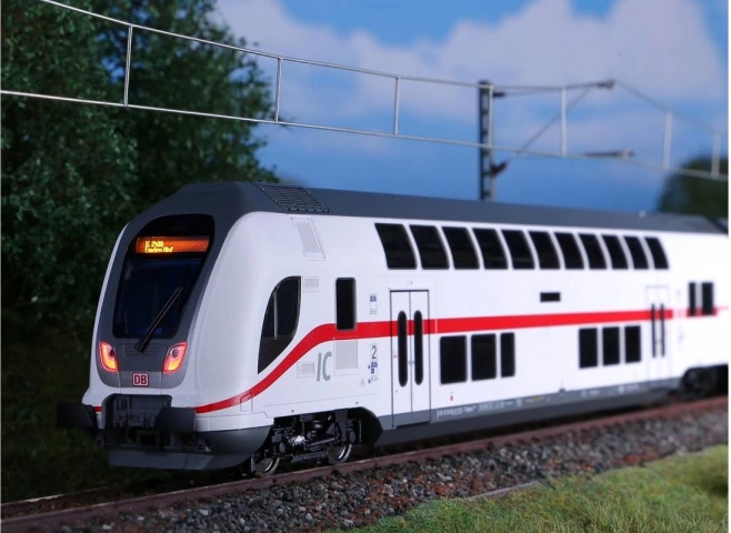 Részletesen kidolgozott, kétszintes IC2 2. osztályú vezérlőkocsi H0 méretarányban, DB AG festéssel és feliratozással. Kínál fehér/piros LED világítást irányváltással, vezérlődekóder fogadására előkészítve, és ideális teljes IC2 szerelvényekhez BR 146.5 vagy 147.5 mozdonyokkal.