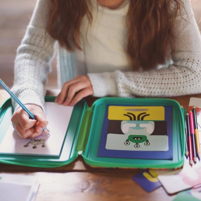 Szörnyecskék kreatív készlet a Petit Collage-tól, ideális a kis művészeknek. Tartalmaz kártyákat és pasztell krétákat az eredeti szörnyecskék megalkotásához, kompakt mágneses tokban.