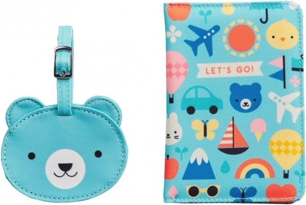 Stílusos és funkcionális úti kiegészítő családoknak, akik gyakran indulnak felfedezni. Az állatfigurákkal és utazós motívumokkal díszített okmánytartó biztonságosan tárolja az útleveleket vagy a TAJ-kártyát, míg a mackó alakú névcímke segít gyorsan felismerni a babakocsit, táskát vagy bőröndöt.