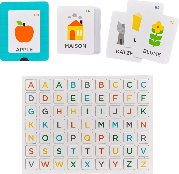 Fedezze fel a játékos ábécétanulást a Petit Collage többnyelvű szettjével. A gyerekek megismerkednek a betűkkel és az alap szókincscsel angolul, németül, spanyolul és franciául az áttekinthető kártyáknak és a könnyen összeilleszthető, többször használható mágneses betűknek köszönhetően.