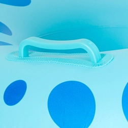 Vidám kék, pöttyös dizájn, amely pozitív viszonyt alakít ki a vízzel, és minden fürdést szórakozássá varázsol.