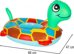 A felfújható teknős ülés remek segítőtárs az első vízi élményekhez. A két lábnyílásnak köszönhetően a gyermek stabilan ül, míg a színes dizájn és a mosolygós teknősfej játékra hív. A tartós PVC hosszú élettartamot és könnyű karbantartást biztosít.